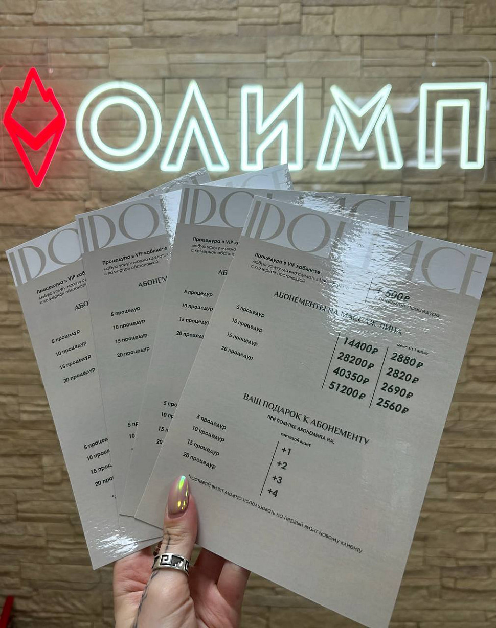 Все портфолио Назад Дальше Ламинированные прайс-листы для IDOL FACE О проекте Прайс-листы на мелованной бумаге 300 г/м2, цифровая двухсторонняя печать, глянцевая ламинация 250 мкм Срок изготовления 2 рабочих дня. Кто мы https://youtu.be/VIuj4labZm4 Похожие работы Наружная реклама для клуба виртуальной реальности "VRглЮклуб" Прайс-листы на мелованной бумаге 300 г/м2, цифровая двухсторонняя печать,... Подробнее Создание сайта для IT-компании "Тактика роста" Прайс-листы на мелованной бумаге 300 г/м2, цифровая двухсторонняя печать,... Подробнее Изготовление таблички из акрила на дистанционных держателях Прайс-листы на мелованной бумаге 300 г/м2, цифровая двухсторонняя печать,... Подробнее Дизайн визитки для ООО "ЭНТЕХ" Прайс-листы на мелованной бумаге 300 г/м2, цифровая двухсторонняя печать,... Подробнее Оклейка плёнкой газели для супермаркета товаров для детей "RANT" Прайс-листы на мелованной бумаге 300 г/м2, цифровая двухсторонняя печать,... Подробнее Логотип и фирменный стиль для "SVET.kz" Прайс-листы на мелованной бумаге 300 г/м2, цифровая двухсторонняя печать,... Подробнее Световая вывеска для "Sky Fish" Прайс-листы на мелованной бумаге 300 г/м2, цифровая двухсторонняя печать,... Подробнее Наружная реклама для клуба единоборств "Сибирь" Прайс-листы на мелованной бумаге 300 г/м2, цифровая двухсторонняя печать,... Подробнее